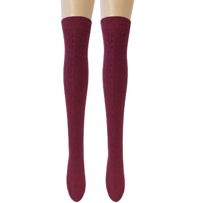 Wrapables Women's Cable Knit Knee High Boot Socks, Wine