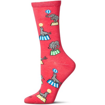 Memoi Women's "Circus Fun" Rayon Blend Novelty Crew Sock Teaberry 9-11
