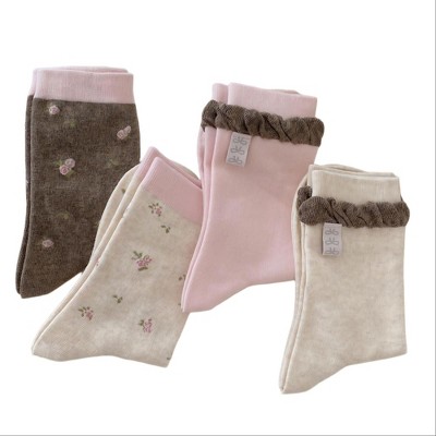 Memoi Basic Flat Soft-Fit Women's Crew Knit Socks 3-Pack Brown One Size