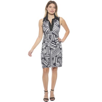 Womens Geometric Sleeveless Fit N Flare Knee Length A-Line Dress - 24seven Comfort Apparel™