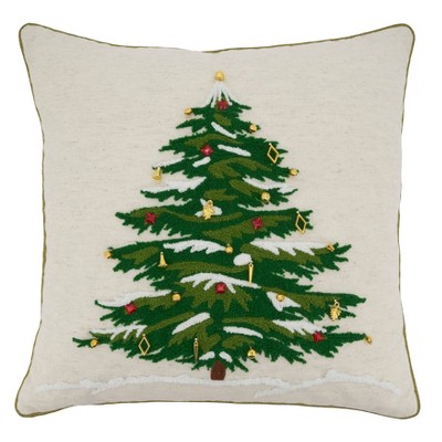 18"x18" Embroidered Christmas Tree Poly Filled Square Throw Pillow - Saro Lifestyle