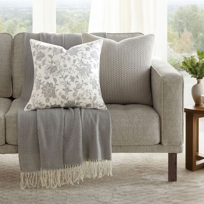 2-Pack Light Gray Throw Pillows Seed Stitch Knit with Cotton Patterns in Jacobean - Becky Cameron, Light Gray, 20 x 20