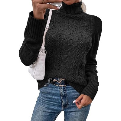 Imily Bela Women's Autumn/Winter Casual High Neck Long Sleeve Cable Knit Solid Slim Fit Turtleneck Sweater Pullover Tops