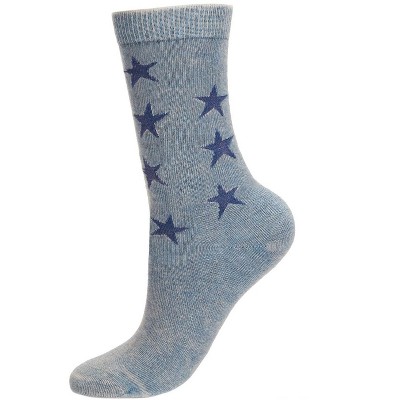 Memoi Women's Acid Wash Star Cotton Blend Crew Socks