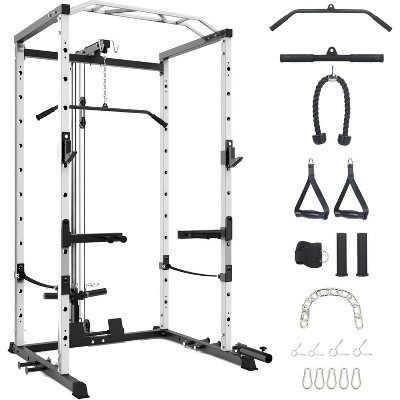 Acekool Power Cage, 1600lb Multi-Functional Squat Rack with LAT Pulldown, Cable System, Dip Bars, 20 Attachments, Home Gym