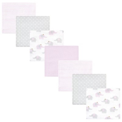 Hudson Baby Infant Girls Cotton Rich Flannel Receiving Blankets Bundle, Lilac Elephants, One Size