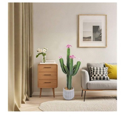 Artificial Cactus Plant, Tall UV Resistant Faux Cactus Plant, Realistic Texture Tall Fake Plant, Faux Desert Cacti Potted Plant with Planter