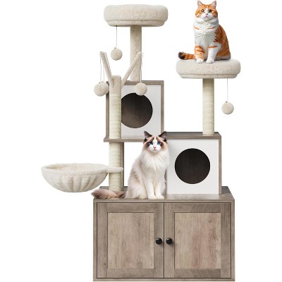 57.5" Modern Cat Tree with Hidden Litter Box, 2-in-1 Cat Tower & Enclosure with Hammock