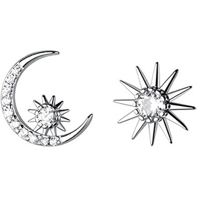 14K Gold Moon Star Earring Set, 3Pcs Tassel Chain Stud with Sparkly Zircon, Asymmetric Stacking Jewelry Gift for Women.