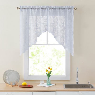 HLC.ME Jolene Floral Rod Pocket Lace Short Cafe Swags for Small Windows, Kitchens, and Basement Windows - Set of 2