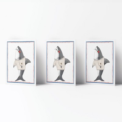 Love/Valentine's Assorted Greeting Card Pack (3ct) "LOVE Nautical Flags, Sharky Love, Lobster Date" by Ramus & Co