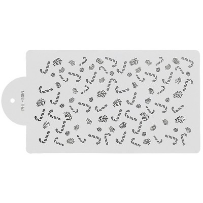 O'Creme Cake Decorating Stencil, Candy Canes, Feathers and Christmas-Tree Ornaments