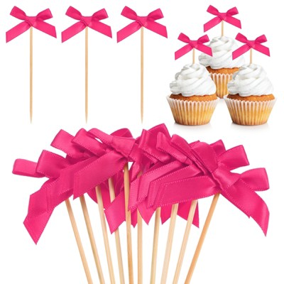 O'Creme Pink Glitter Heart Cake Toppers with Pompom or Tassel, Total 3 Pieces