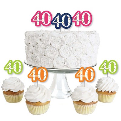 Big Dot of Happiness 40th Birthday - Cheerful Happy Birthday - Dessert Cupcake Toppers - Fortieth Birthday Party Clear Treat Picks - Set of 24