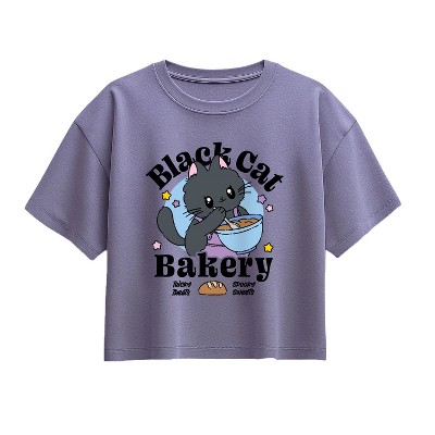 Girls' - Instant Message - Black Cat Bakery Short Sleeve Boxy Graphic T-Shirt
