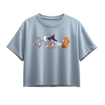 Girls' Care Bears Halloween Short Sleeve Boxy Graphic T-Shirt - Chambray Blue - Medium