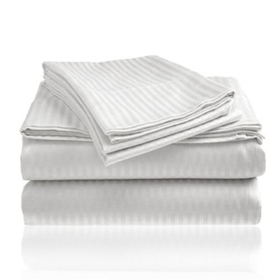 Plazatex Embossed 1800 Series Wrinkle Resistant Stripe All Season Bed Sheet Set, White