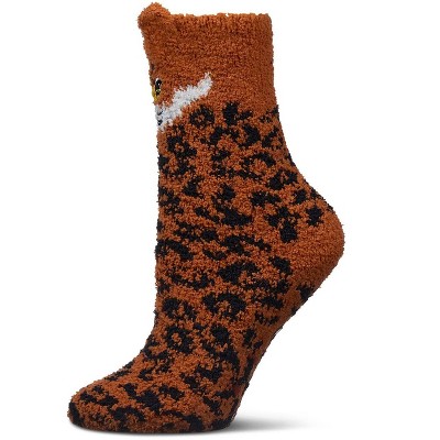 Memoi Women's Leopard Embellished Plush Crews Brown One Size