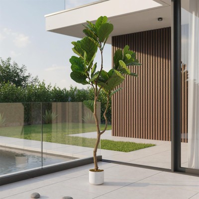 Artificial Fiddle Leaf Fig – 5-foot simulated fiddle leaf fig, large indoor and outdoor decorative green plant, easy to care for.