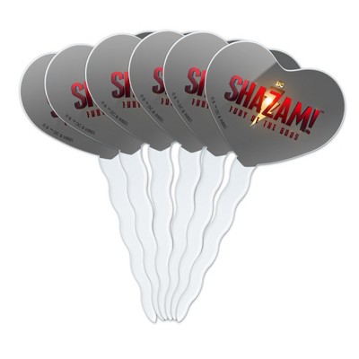 Shazam Fury of the Gods Logo Heart Love Cupcake Picks Toppers Decoration Set of 6