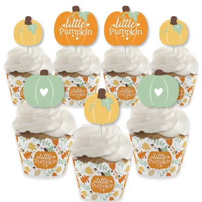 Big Dot of Happiness Little Pumpkin - Cupcake Decoration - Fall Birthday Party or Baby Shower Cupcake Wrappers and Treat Picks Kit - Set of 24