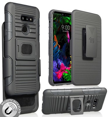 Nakedcellphone Case with Stand and Belt Clip Holster for LG G8 ThinQ Phone - Black