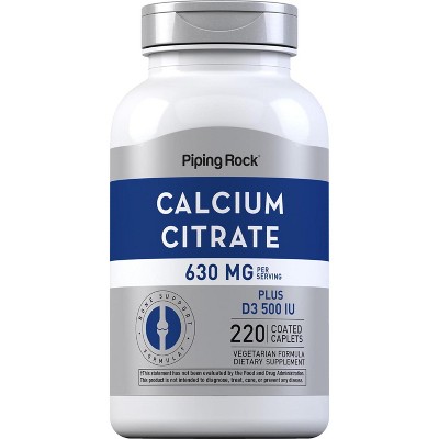 Piping Rock Calcium Citrate Supplement with Vitamin D3 | 630mg | 220 Caplets
