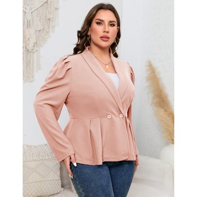 Womens Plus Size Long Sleeve Two Buttons Shawl Lapel Blazer