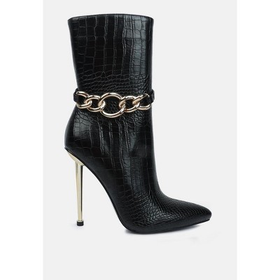 Allegra K Women's Rhinestone Crystal Chain Pointed Toe StilettoHeels Knee High Dress Boots