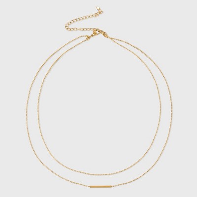 Layered Ball Water Resistant Metallic Chain Bar Necklace - A New Day™ Gold