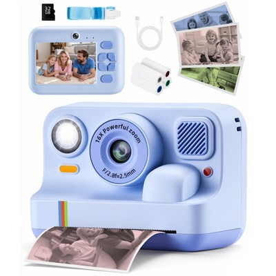 Kids Instant Print Camera with App, 1080P HD Dual Lens Selfie, 32GB SD Card, Gift for Boys Girls Ages 4-12