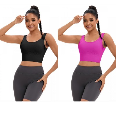 INSPIRE CHIC 2 Pcs Women's Full Coverage Deep V-Back Workout Fixed Cup Comfort Sports Bras