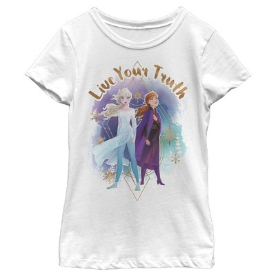 Girl's Frozen 2 Elsa Anna Live Your Truth Geometric Portrait T-Shirt