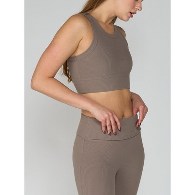 NPolar "Women’s Cross Back Sport Bra Padded Strappy Crop Top – Low Impact, Removable Pads for Gym & Yoga" Medium Brown