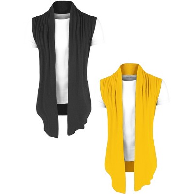 Lars Amadeus Men's Open Front Solid Ruffle Collar Cardigan Vest 2 Packs
