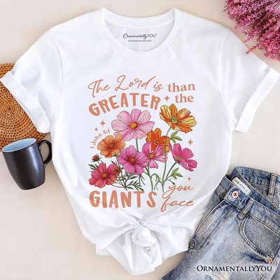 The Lord Is Greater Floral Christian T-Shirt, Faith Bible Verse Inspirational Tee | OrnamentallyYou