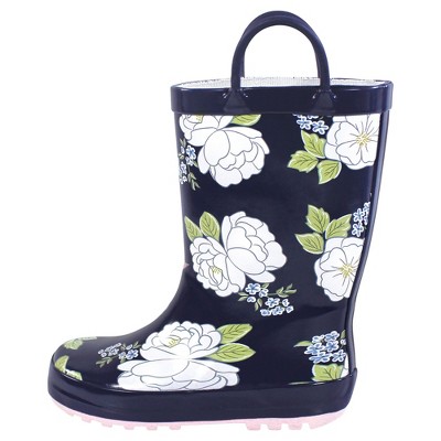 Hudson Baby Girls Rain Boots, Midnight Pink Roses