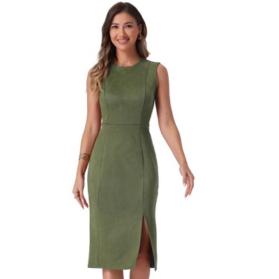 INSPIRE CHIC Women's Faux Suede Sleeveless Crewneck Split Hem Work Sheath Dress