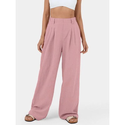 Women's Loose Fit Wide Leg Pants Elastic Waist Straight Cut Casual Lounge Pants