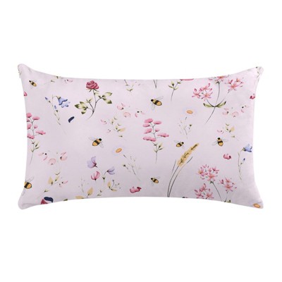 Whimsical Plush Velvet Pillow Cover, Wildflower & Bee Print, Hidden Zipper, Soft Durable Lumbar Pillowcase for Nursery & Sofa 12x20 Iniches