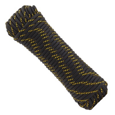 Built Industrial Braided Polyester Rope for Camping, Dock Lines, Knot Tying Practice, Pinata, Black/Yellow, 3/8 in x 100 ft
