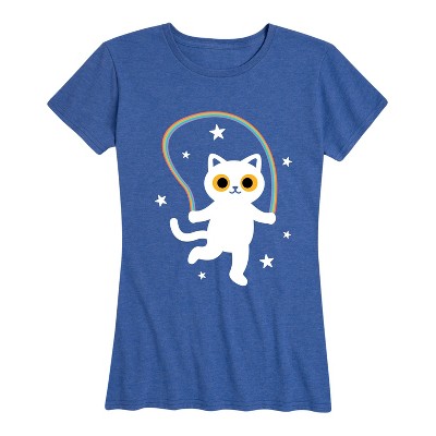 Women's - Instant Message - Cat With Rainbow Jump Rope Short Sleeve Graphic T-Shirt