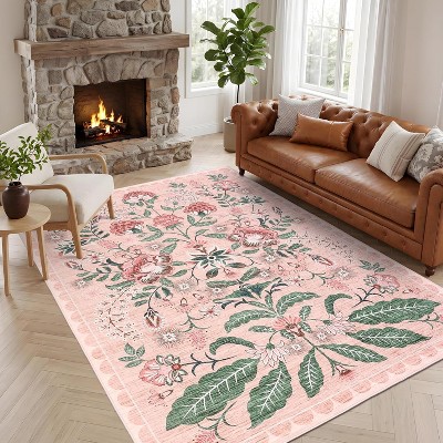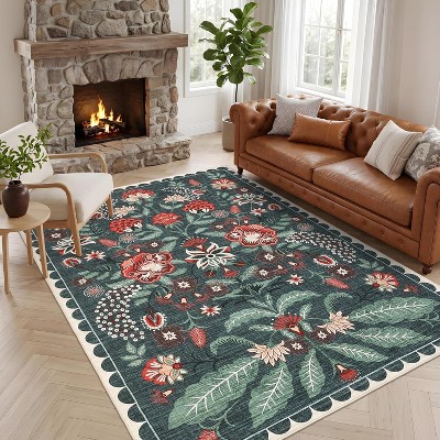 Washable Floral Rugs for Living Room Bedroom, Peacock Print Soft Non Slip Farmhouse Home Decor Carpet for Dining Room Nursery Office