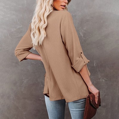 Women's Shawl Collar Blazer, Tailored Slim Fit Single Breasted Jacket for Business Casual
