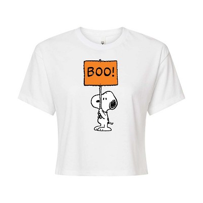 Women's - Peanuts - Snoopy Boo Sign Cropped Graphic T-Shirt