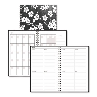 Recycled Non-Dated Monthly/Weekly Planner, Cherry Blossoms, Black/White Cover, Undated