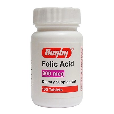 Rugby Folic Acid 800 mcg Tablets for Heart Health, Prenatal Support, and Daily Nutritional Balance – 100 Count