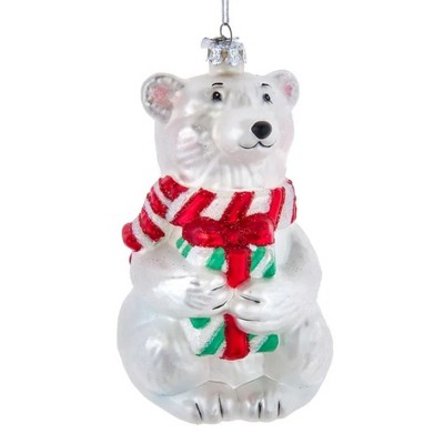 Kurt Adler Noble Gems Glass Ornament for Christmas Tree, Polar Bear with Gift