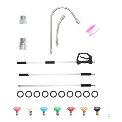 VEVOR 9 FT Pressure Washer Telescoping Wand, 3-Section with Power Washer Extension Wands, 7 Nozzles, Hose Adapter, 4000 PSI, Black&Silver