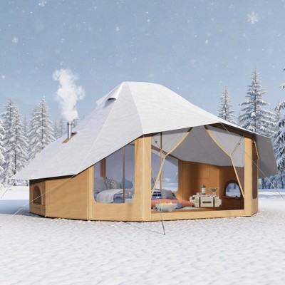 AMERLIFE Insulated Pop-Up Ice Fishing Tent, 3-Layer Oxford Fabric Ice Shanty with Waterproof Cover, Chimney Vent, Anchors, Ropes, and Carry Bag